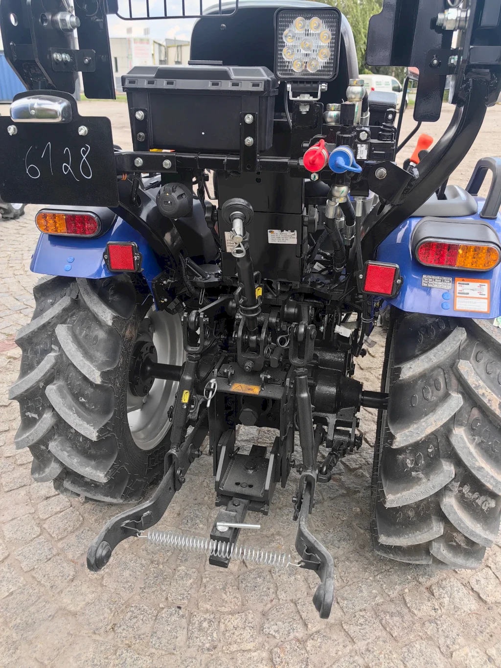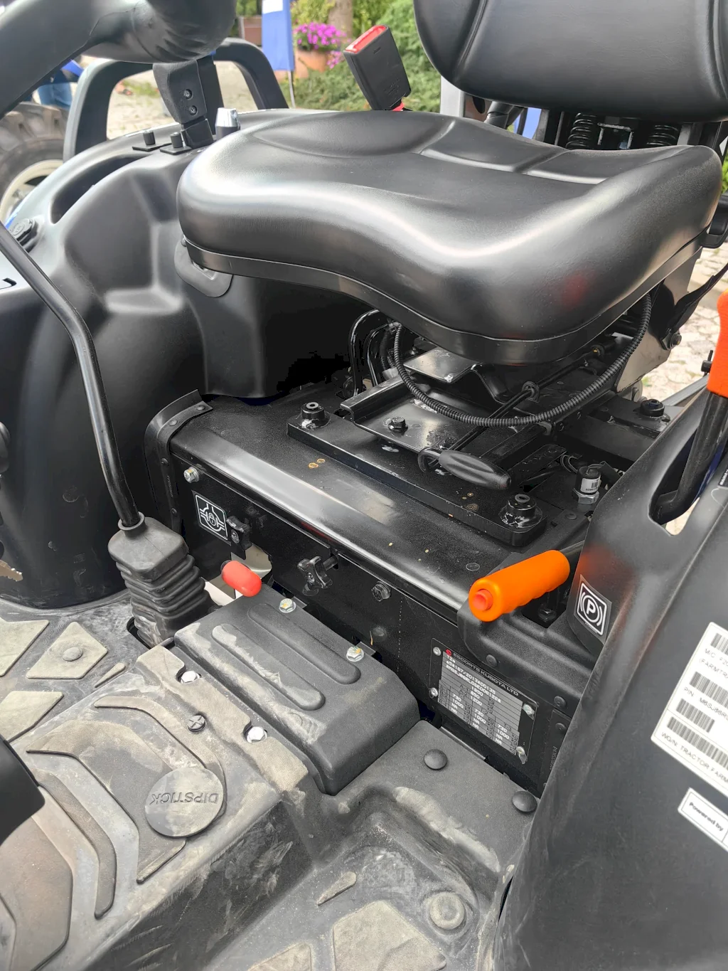 Dolny wydech, rama składana ROPS, wyłączanie silnika za pomocą kluczyka, wyłacznik odcięcia baterii, czujnik obecności operatora, zaczep dolny, lampa ostrzegawcza, siedzisko mechaniczne wodoodporne