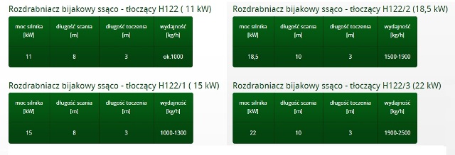 Firma posiada szeroką gamę śrutowników, są produkowane od wydajności 800 kg/h aż do 2500 kg/h, siła ssania od 8 do 10 mb, długość tłoczenia 3mb, dostępne moce: 11,15,18,22 kW, zapotrzebowanie na moc od 25A do 63A.