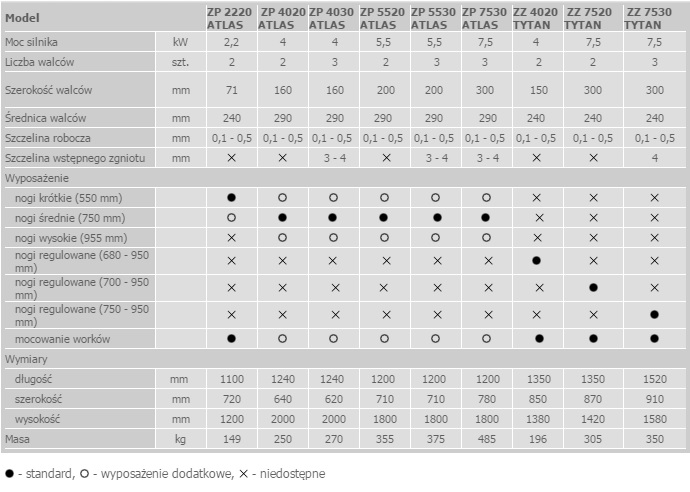 Szeroka oferta SIPMA S.A. Aby spełnić oczekiwania Klientów SIPMA S.A. oferuje 9 wersji zgniataczy ziarna różniących się: